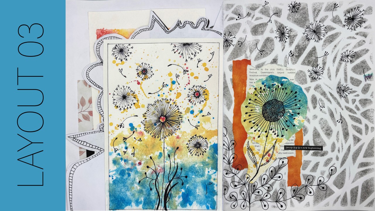 And if you're looking for more creative opportunities as an emotional outlet, come to one of my classes, where we create art like you see on the left of Layout 03 (The Dandelions)