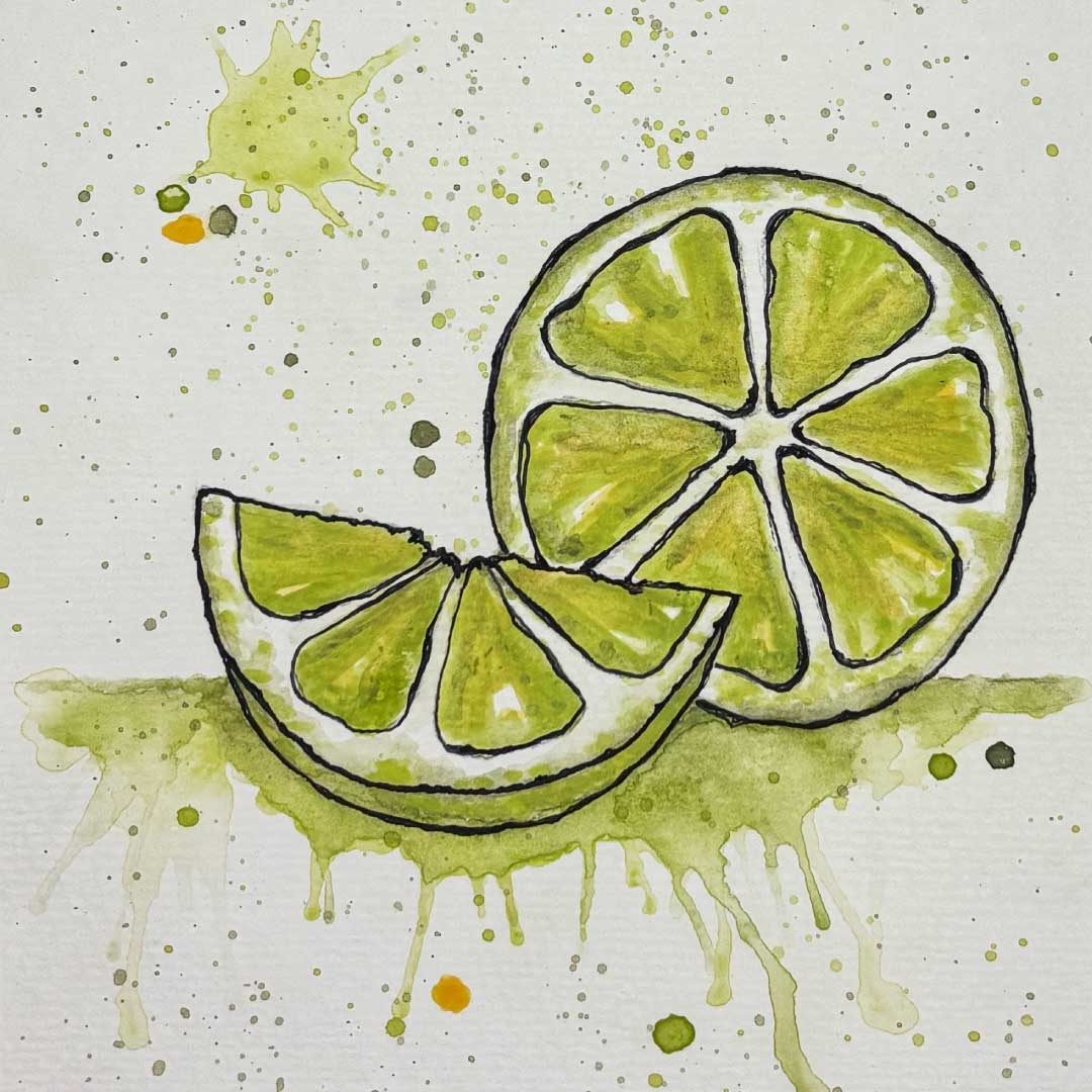 All art materials (pigment liners, paper and watercolour pencils) included .