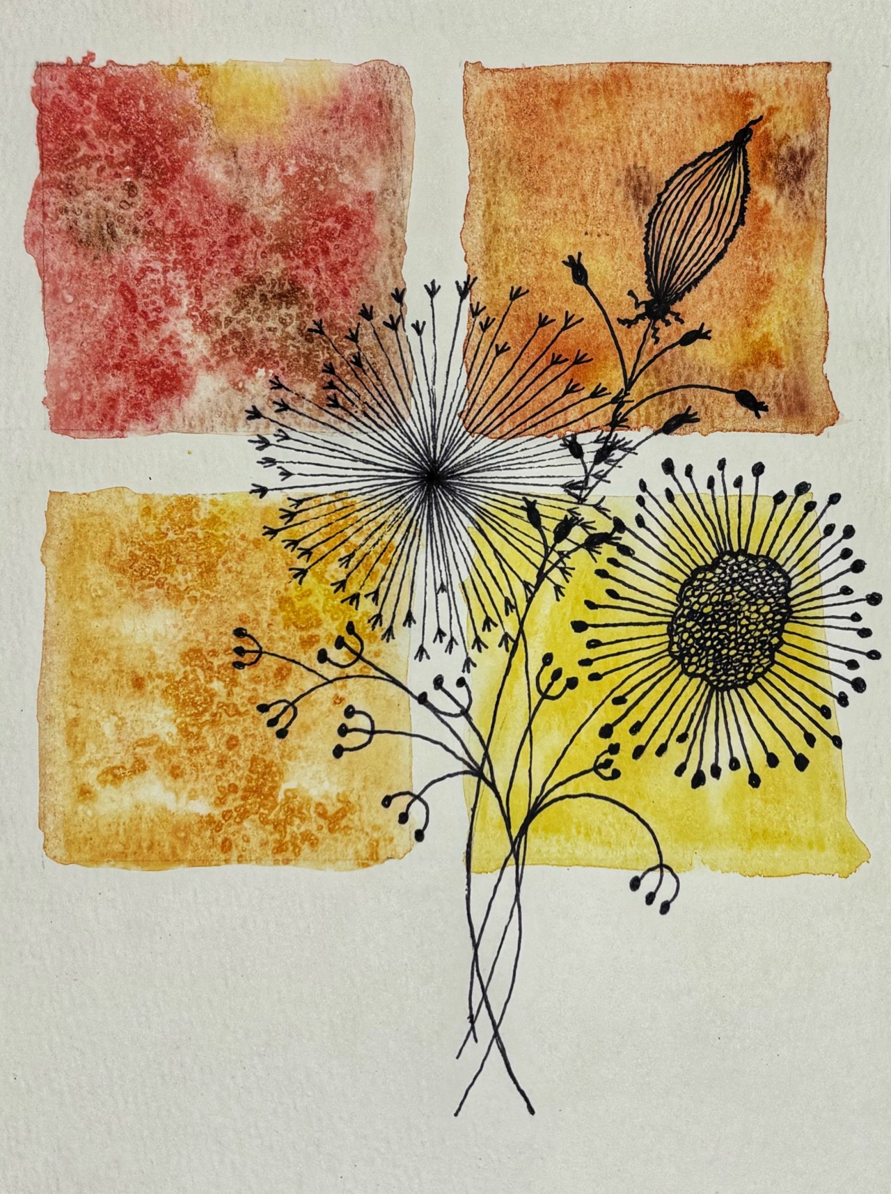 Created using watercolour pencil and black pigment liner. It involves some therapeutic, mindful colour-mixing & doodling, and will be a great way to slow down the tempo of a fast paced life and return to way of the maker.